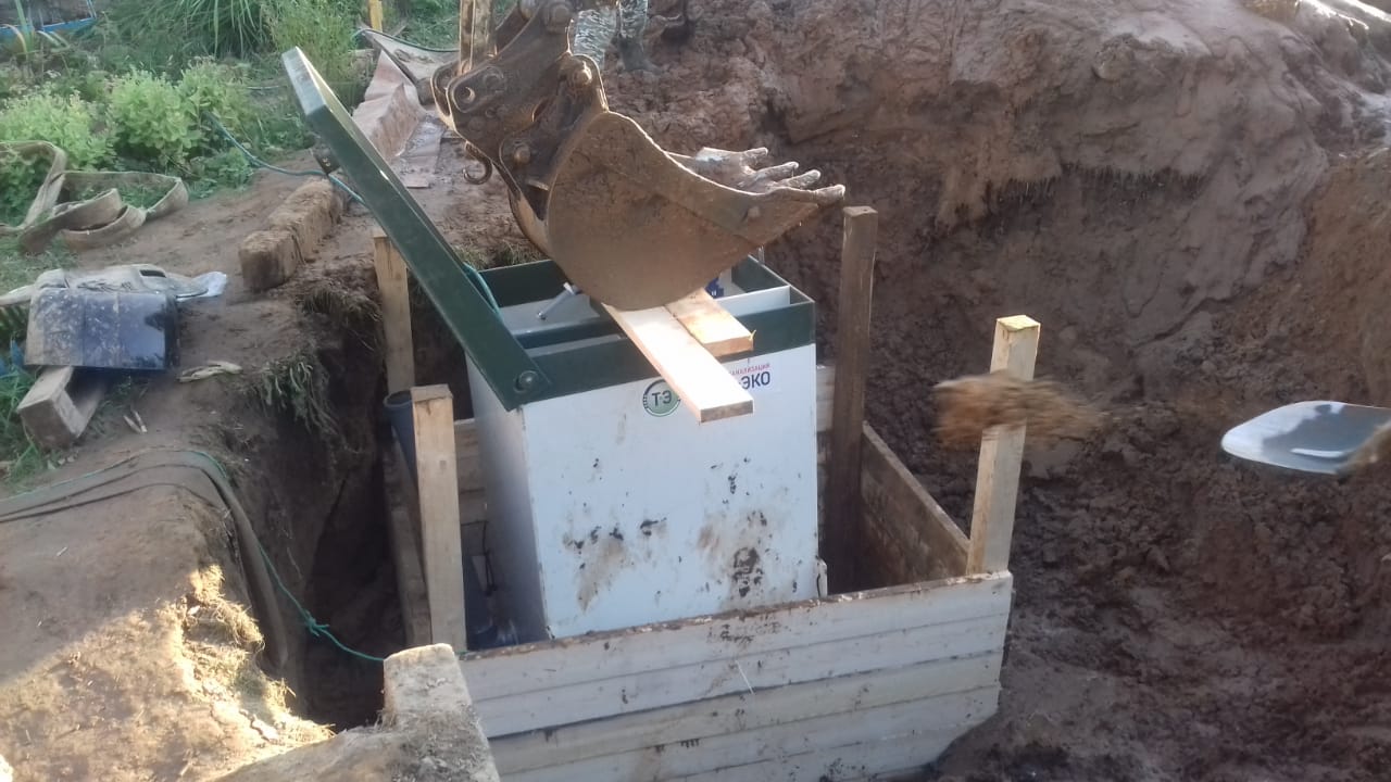 Монтаж ТОПАС 5 Пр осуществляют в подготовленный котлован согласно монтажной схеме. Обсыпка производится песком без крупных фракций, дополнительное бетонирование корпуса не требуется.