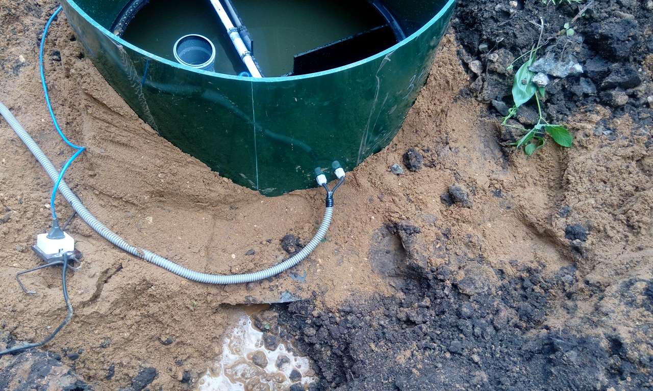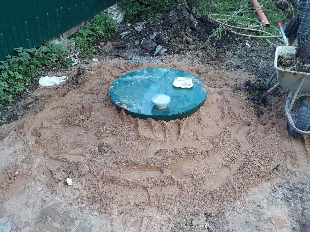 - Подключение к станции подводящего и отводящего патрубков, предварительно уложенных на песчаную подушку.
