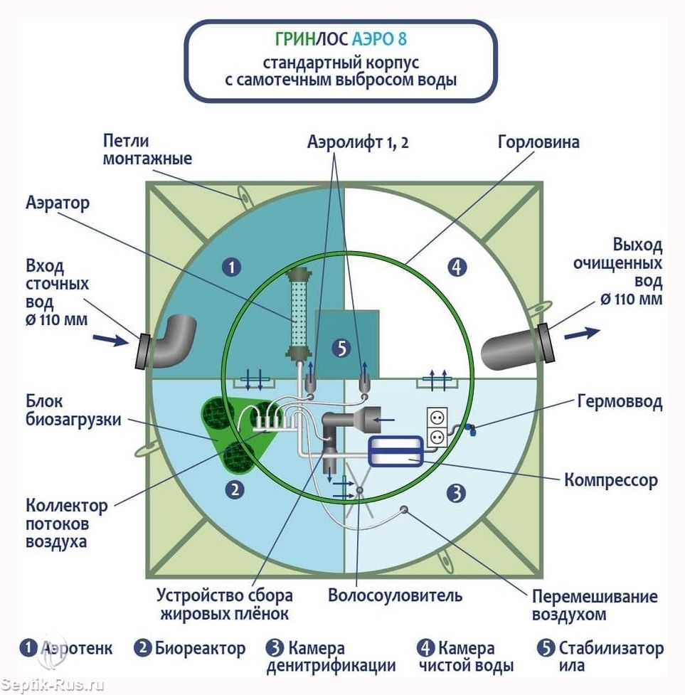 Обслуживание септиков ГРИНЛОС Аэро 8 производится один раз в год по следующему регламенту: