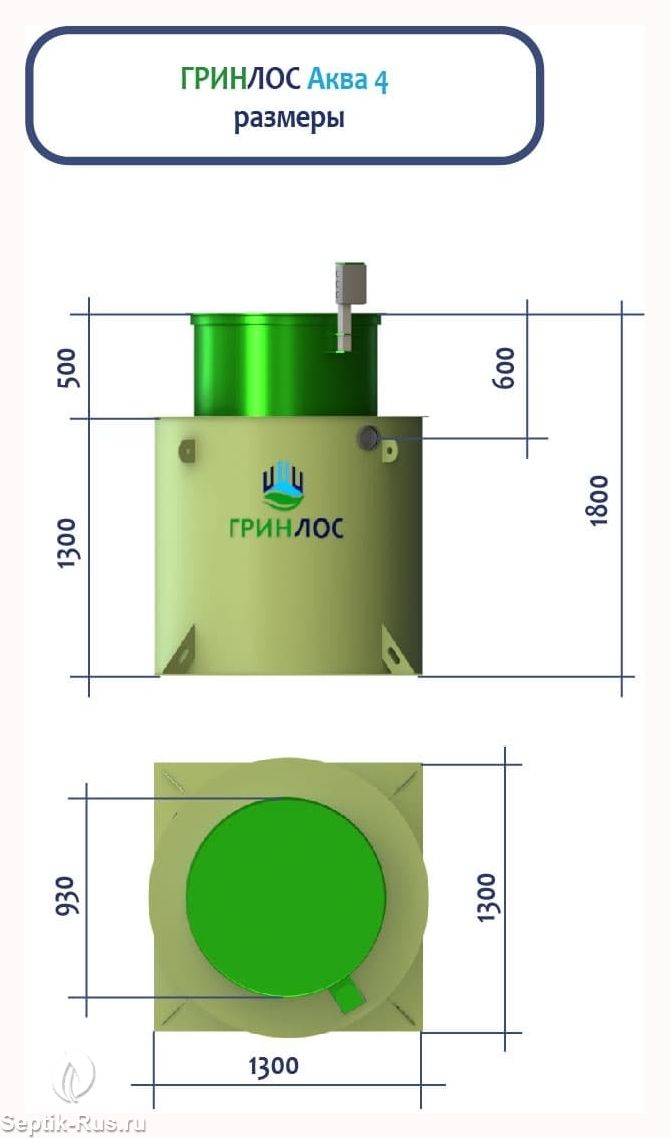 ГРИНЛОС Аква 4 - это самотечная модель септика с залповым сбросом 340 л. и производительностью 0,8 м3/сутки, что делает его подходящим для домов, в которых число жильцов не превышает 4 условных пользователей.
