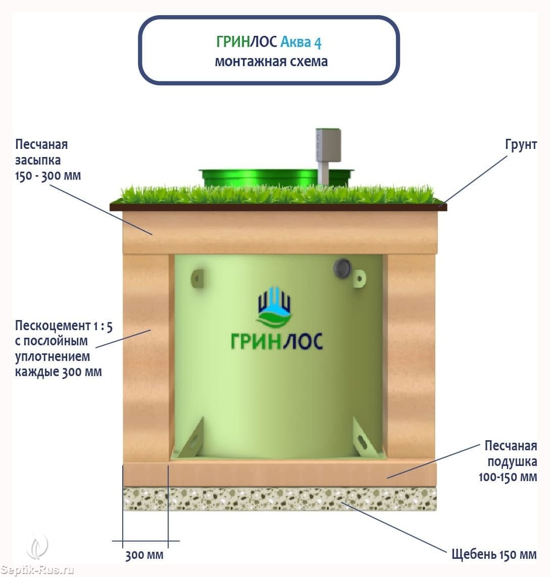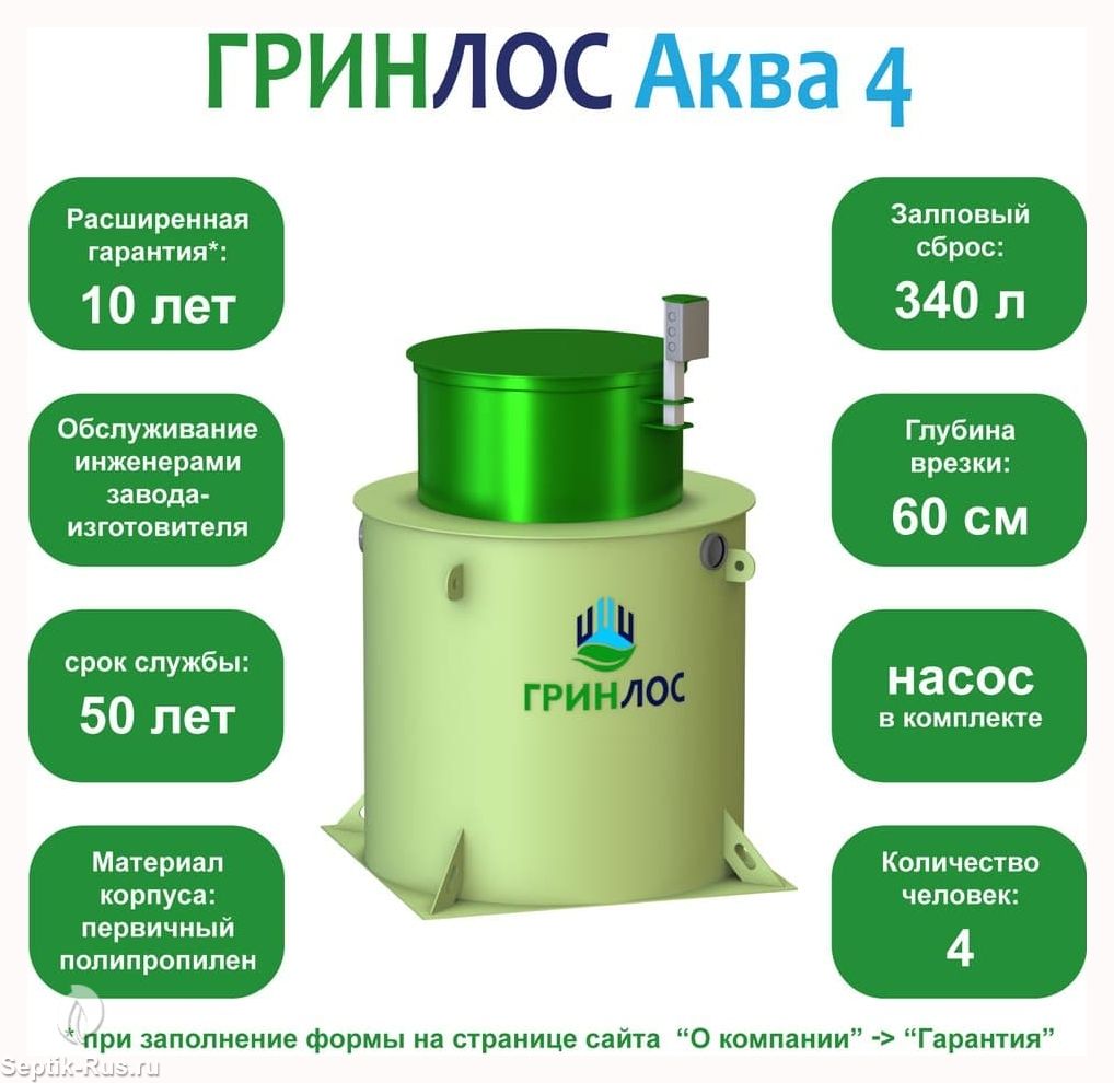 Доставим и установим септик ГРИНЛОС Аква 4 за 1 день по цене ниже конкурентов и скидкой на монтаж до 29%. Звоните!