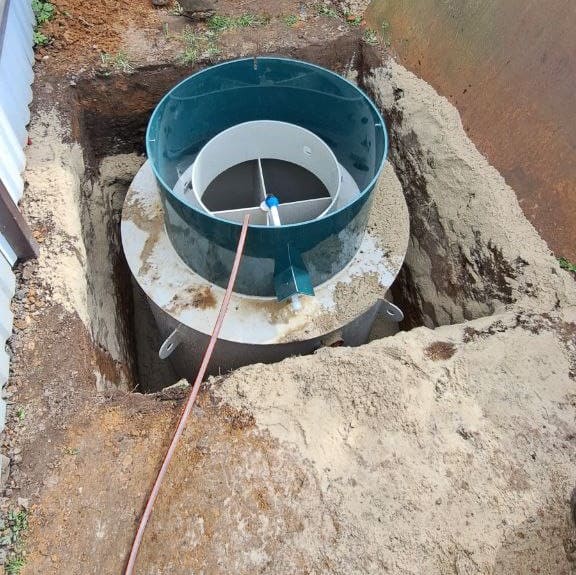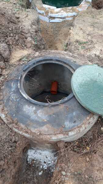 Колодец поглощения может быть выполнен из бетонных колец или при помощи пластикового колодца с перфорированным основанием и стенками. При монтаже колодца поглощения на выпуск трубы рекомендуется смонтировать обратный клапан для защиты ГРИНЛОС Аква 4 от обратного затопления в периоды активного снеготаяния или в дождливое межсезонье. Непосредственно под выпуском отводящей трубы, рекомендуется смонтировать аварийный насос, для дополнительной защиты Станции от обратного затопления из колодца поглощения
