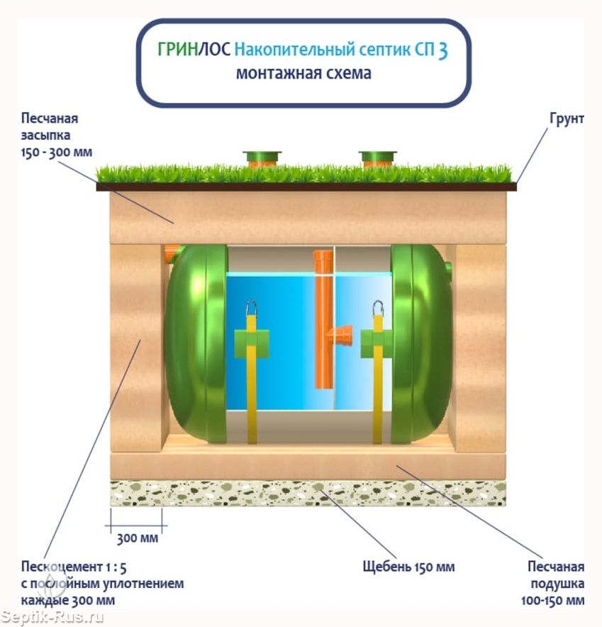 Доставим и установим септик Накопительный септик Гринлос СП 3 за 1 день по цене ниже конкурентов и скидкой на монтаж до 29%. Звоните!