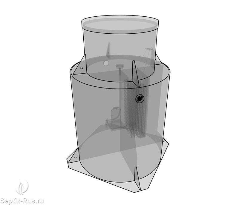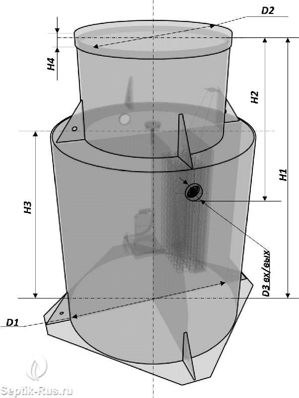 ОНИКС 5П изготовлен из полипропилена европейского производства. Материал характеризуется высокой прочностью и устойчивостью к коррозии. Корпус имеет вертикально вытянутую цилиндрическую форму. Данная модель имеет принудительное отведение очищенных вод.